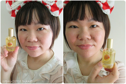 輕輕的噴在脈膊處,還有耳朵後、脖子上 淡淡的、不濃烈的蜂蜜香,很快即轉為一般迷人的香味,很耐聞。 在轉頭、手臂揮舞著,舉手投足之間,都能聞到帶給人好心情的香味呢。